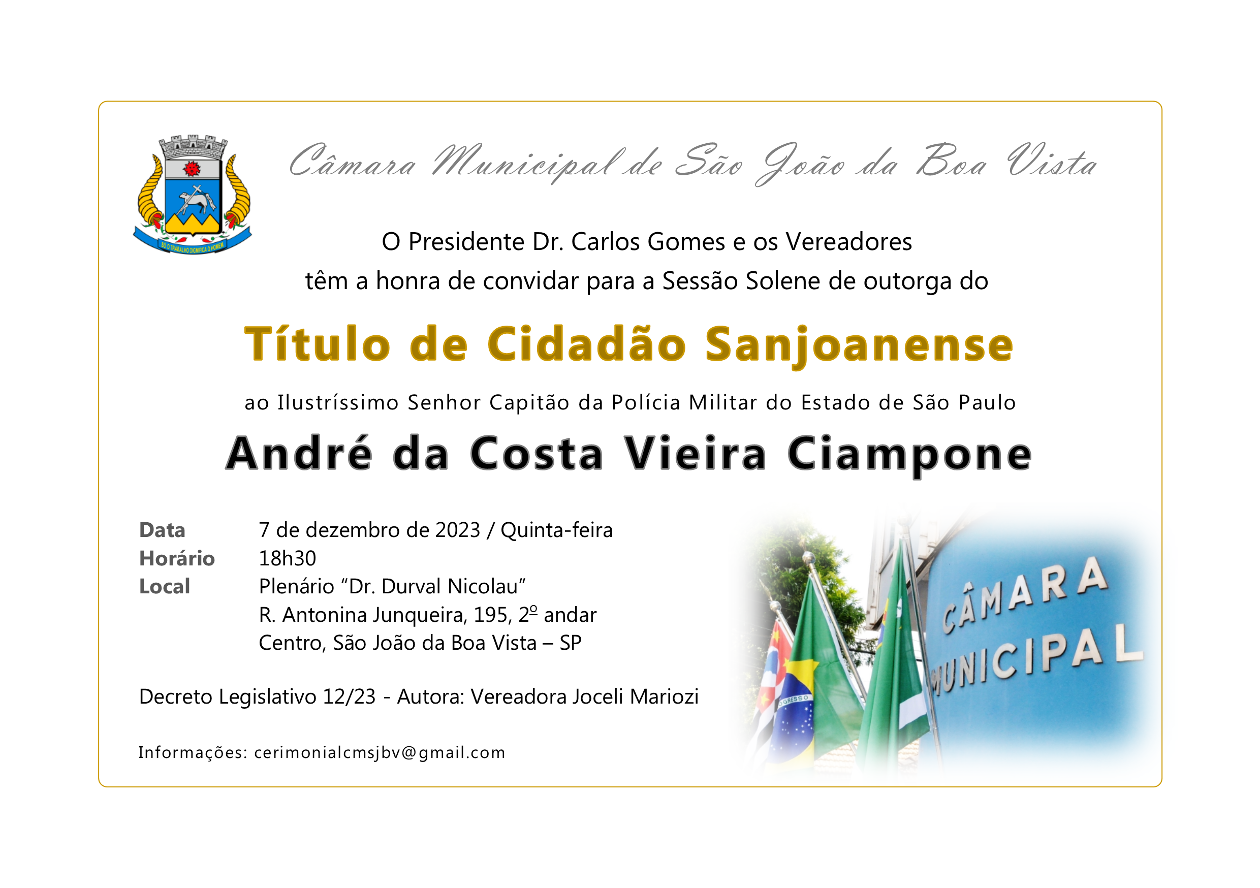 Próximo: Sessão Solene - Título de Cidadão Sanjoanense - Cap. PM André Ciampone »