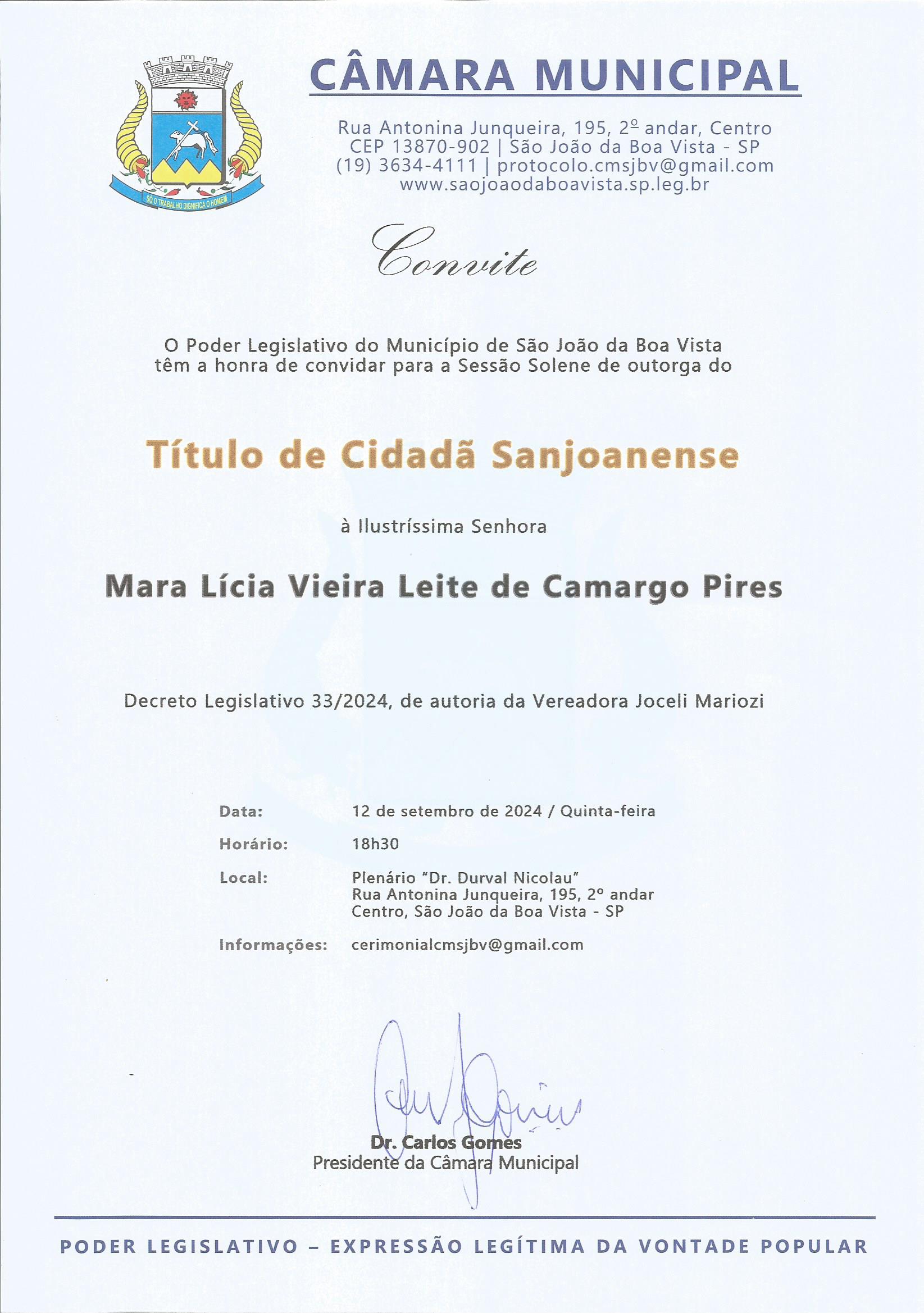 Próximo: Sessão Solene - Título de Cidadã Sanjoanense - Mara Lícia Vieira Leite de Camargo Pires »