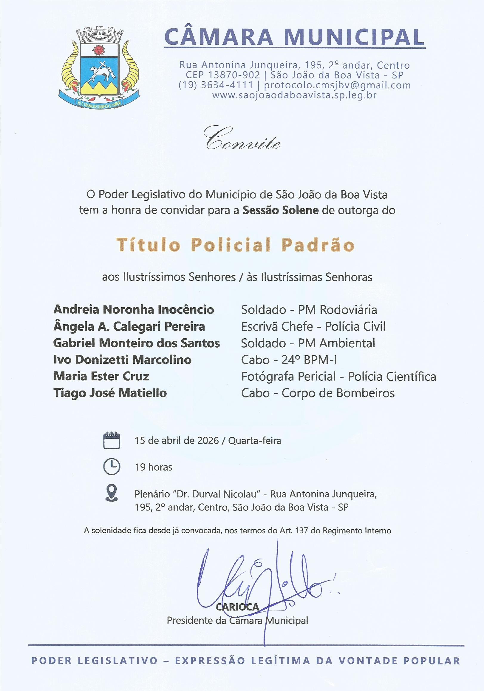 Próximo: Sessão Solene - Título Policial Padrão »