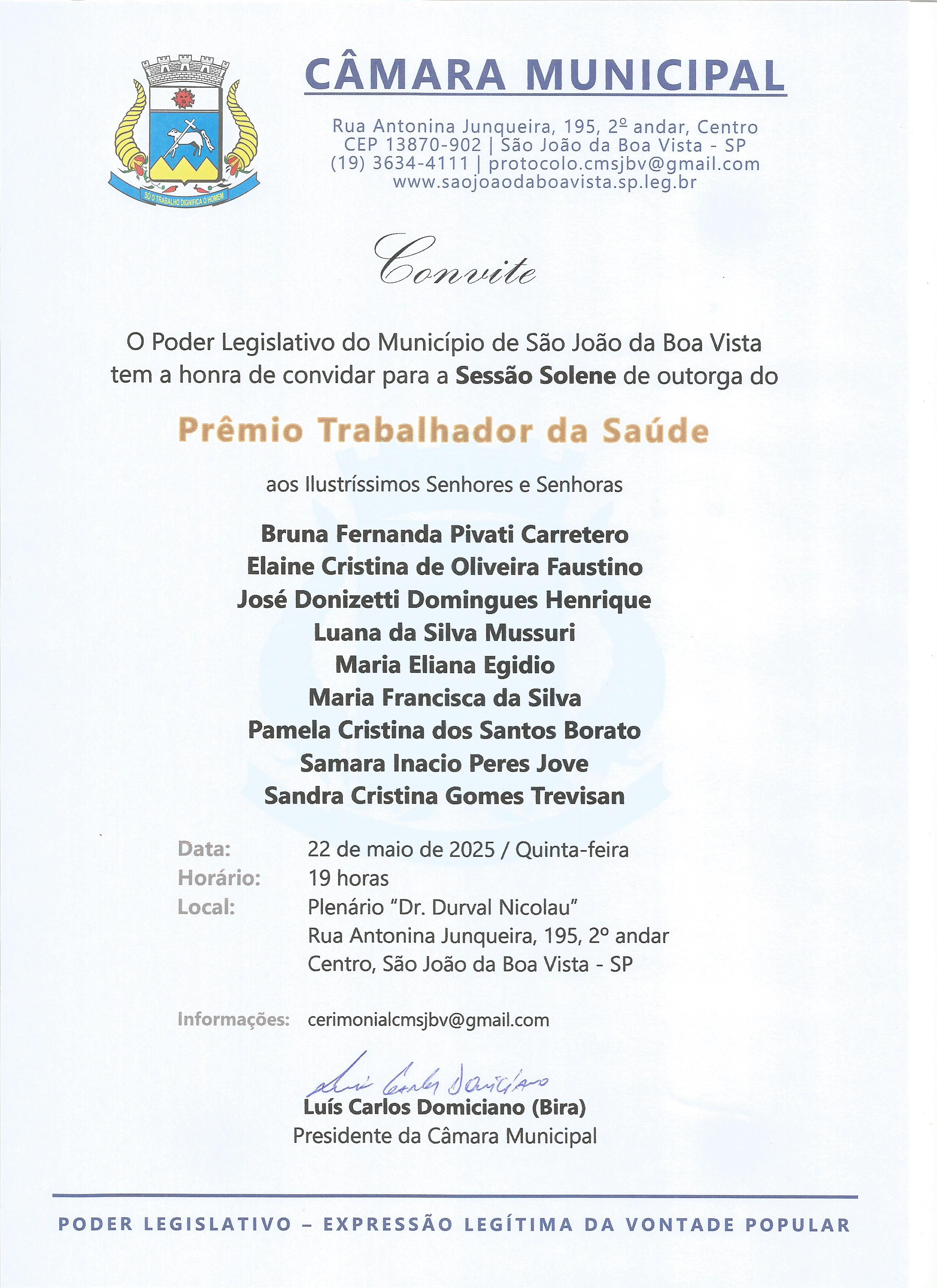 Próximo: Sessão Solene - Prêmio Trabalhador da Saúde »